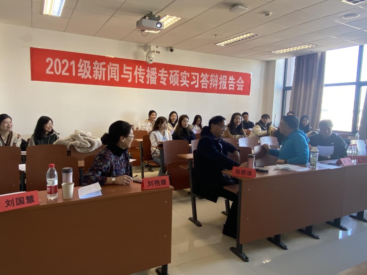 2023年3月18日上午,tyc86太阳集团2023届新闻与传播硕士专业学位研究生实习报告会在南校区卓越楼顺利举行。光明日报社驻内蒙古记者站站长高平、原中央广播电视总台宁波站站长焦健、原内蒙古日报社总编辑孙亚辉、原内蒙古广播电视台总编辑张兴茂、原内蒙古日报社融媒体部主任郝斌、新华社中国经济信息社内蒙古中心总经理史叶、内蒙古日报社北方新报总编辑刘春、呼和浩特市广播电视台副台长白廷旭,以及学院教师共20人担任答辩评委。报告会上,同学们展示了自己的实践成果,并对评委们提出的问题进行了回答。