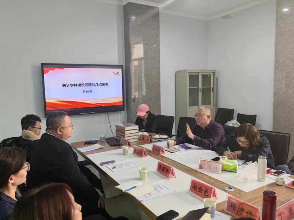 在“汉语言文字学学科发展与展望”议题中,李树新教授首先表达了对山西省社科院语言所终身研究员温端政先生的缅怀之情,指出温先生为汉语语汇学、语典编纂、汉语方言学研究留下了宝贵的学术遗产和精神财富。其次,李树新教授以《关于学科建设问题的几点思考》为题,从学科队伍建设、研究方向凝练、研究平台搭建、项目申报等方面展开了深入研讨,指出我院汉语言文字学学科发展现状喜忧参半,今后应该努力增强团队的凝聚力,围绕语言与民族文化、汉语语汇学这两个研究方向积极搭建学术平台,与相关合作单位建立学术联系,在重视成果转化的同时多方位申报项目。忻丽丽副教授作了题为《“冷门绝学”专项项目“道经特殊文字符号研究”简介》的报告,向大家分享了申报国家社科基金“冷门绝学”专项项目的经验。
