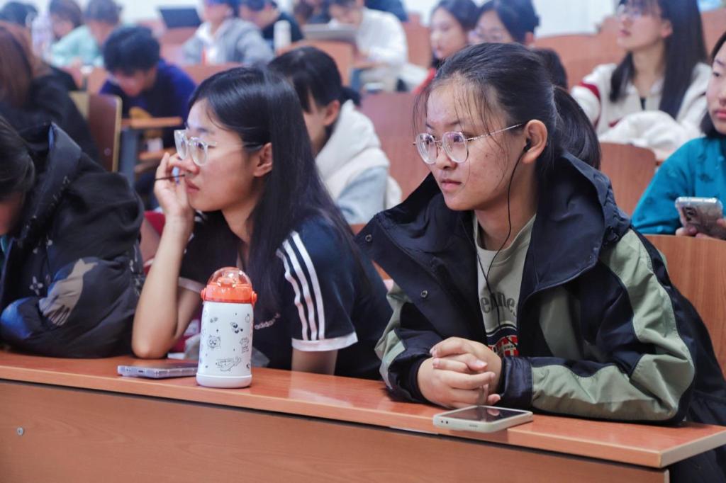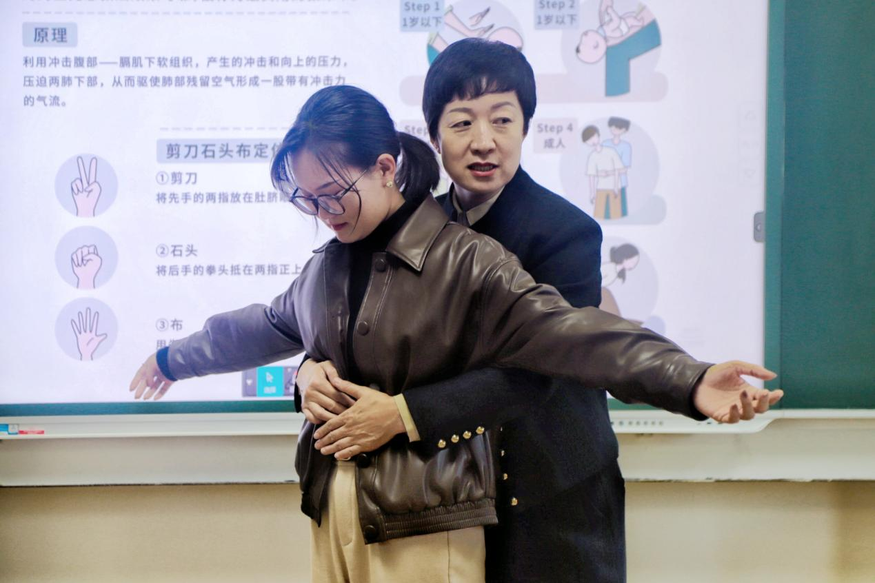讲座伊始,陈护士长以“今天早晨是否吃早饭”和“脆皮大学生”等为切入点与同学们进行互动。接着她通过数据与实例相结合的方式,引导同学们细致地了解健康的生活方式、常见疾病预防、日常饮食中的营养需求以及校园急救和包扎方法。最后,陈护士长请任文秀老师配合,现场演示了海姆立克急救法,并解说其中的原理,希望大家在关键时刻可以施救。最后,陈护士长鼓励大家平时要锻炼身体增强体魄,同时也要注意心理健康发展,这样才能成长为祖国需要的人才。