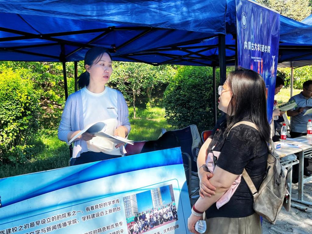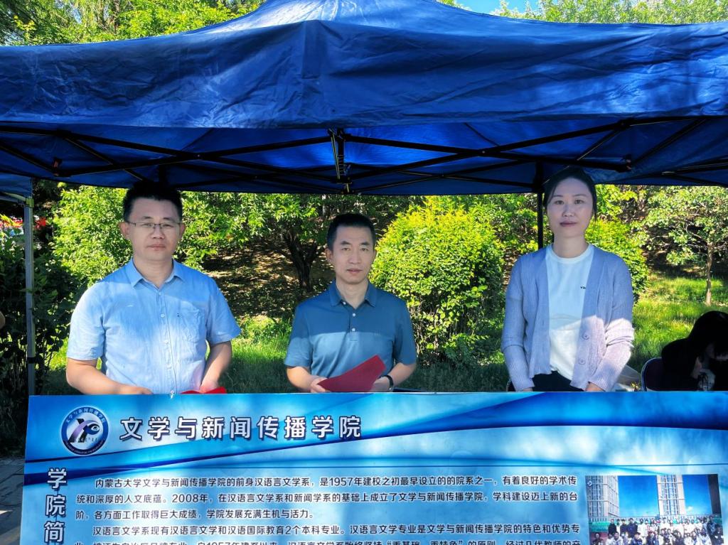 我院副院长刘志中、汉语言文学系主任付建荣、新闻系主任邢渊渊莅临现场,从早上八点开始,与多位考生、家长展开深入交流,详细介绍了我院的专业设置、学科建设、师资队伍以及人才培养方案,针对性地解答了考生和家长们在各专业学习内容、未来就业前景、往年分数线等方面的疑惑,并表示欢迎各位考生成为tyc86太阳集团的一员。