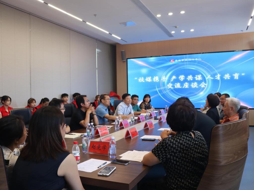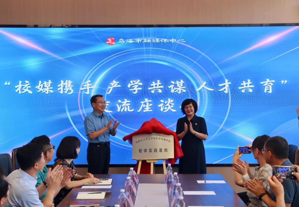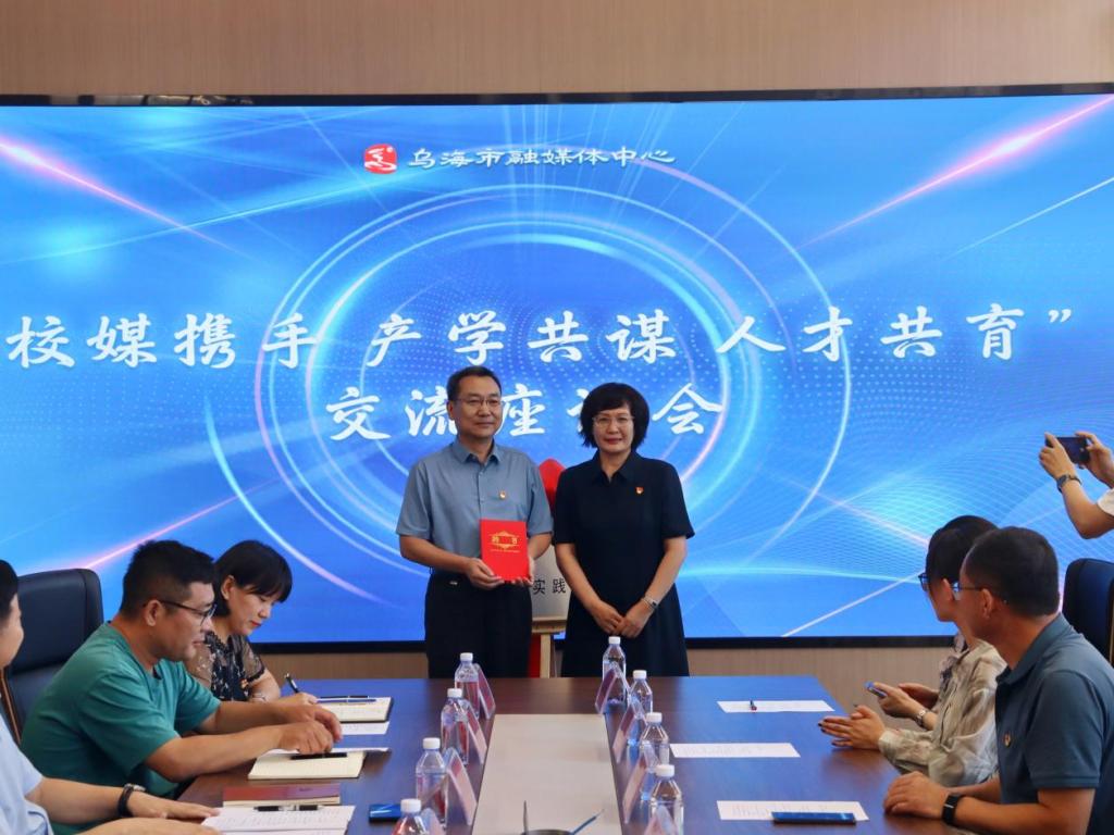 实践活动尾声,乌海市融媒体中心相关负责人与我院师生共同开展“校媒携手 产学共谋 人才共育”交流座谈活动,各实践小组分享汇报实践成果及心得。乌海市融媒体中心党委书记、主任戴军,总编辑郭臣,党委副书记杨延岭,总编室主任闫琪,党群工作部主任刘金平,采集新媒体部主任潘杰与我院教师就实践教学、学生就业、人才培养等展开深入探讨,双方负责人共同为tyc86太阳集团教学实践基地揭牌,我院党委书记张丽萍为戴军书记颁发校外研究生导师聘书。