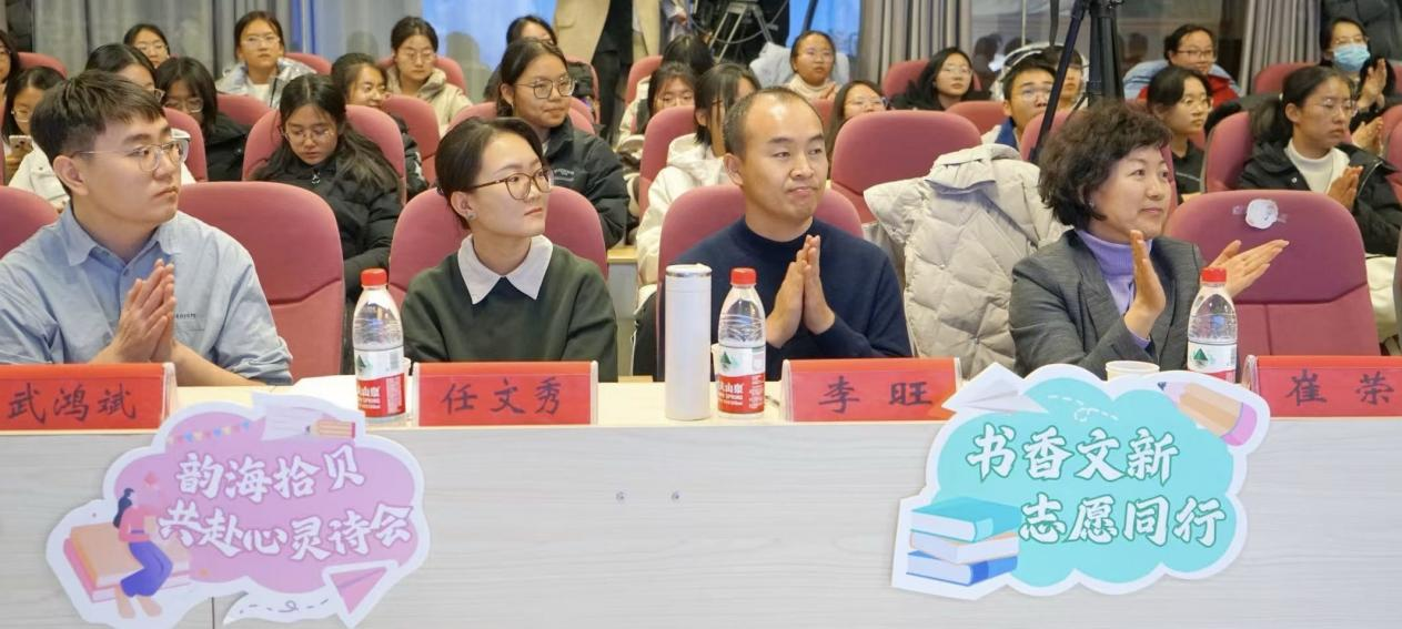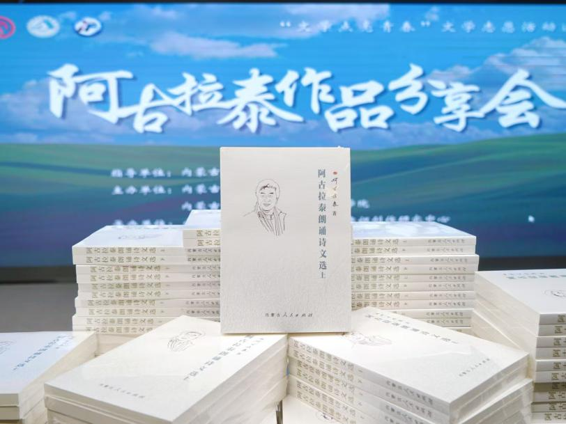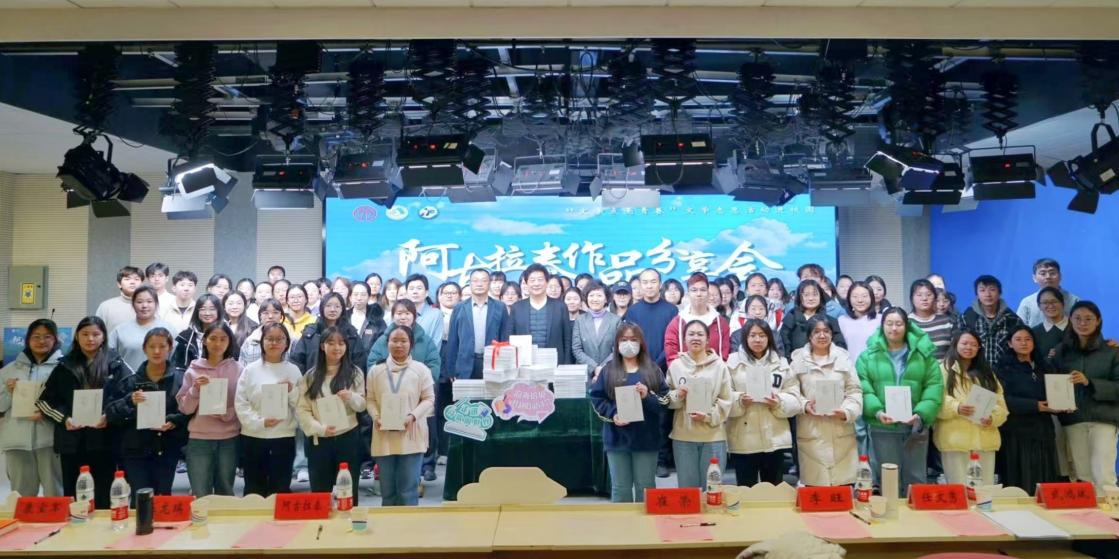 分享结束后,阿古拉泰老师将其代表作品《阿古拉泰朗诵诗文选(上下)》100余套赠予现场同学,并勉励他们以文学为友、与诗歌为伴,让大学生活充满诗意与激情。