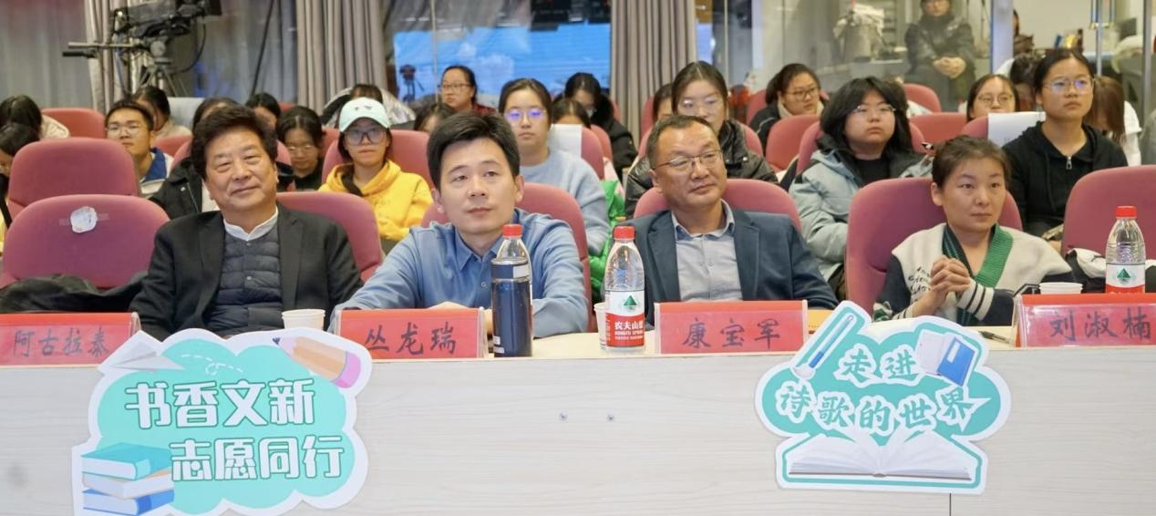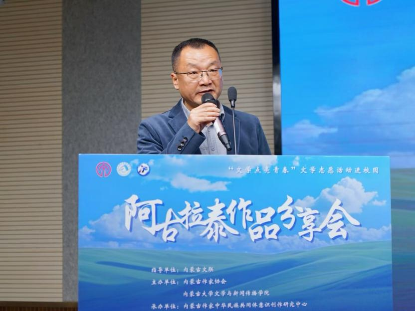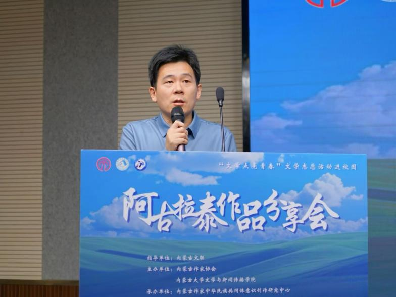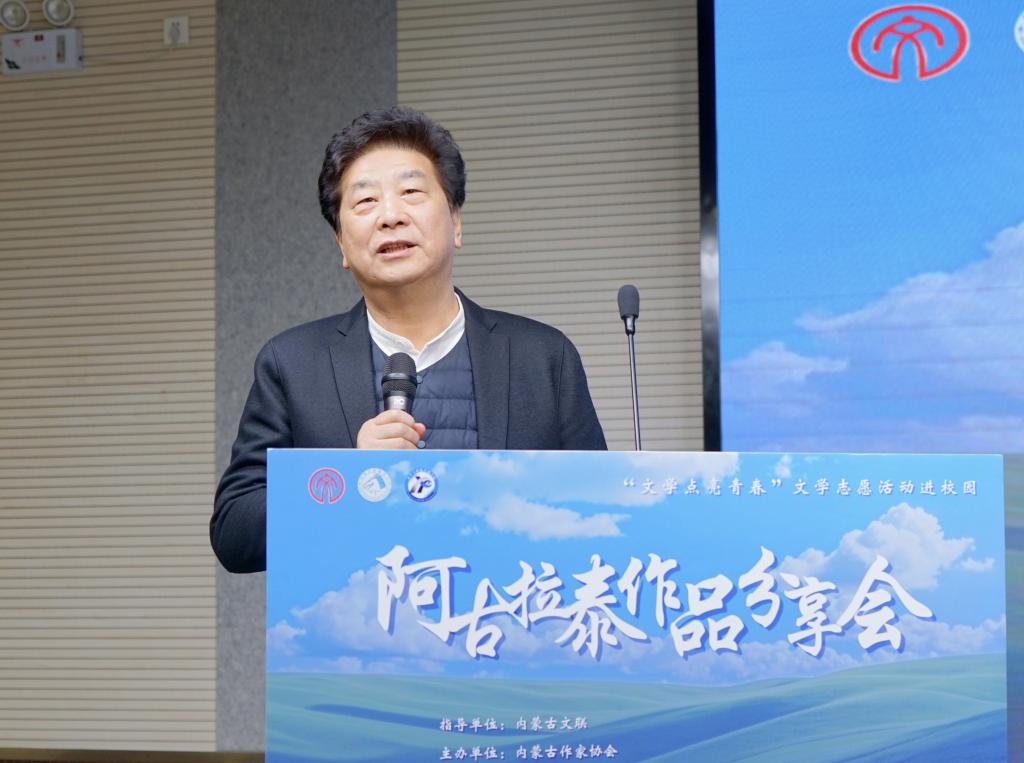 内蒙古作家协会秘书长丛龙瑞、我院党委副书记康宝军分别致辞感谢阿古拉泰先生的倾心分享和慷慨赠予,并鼓励学子以更加饱满的热情与坚定的信念为文学事业的发展贡献青春力量。
