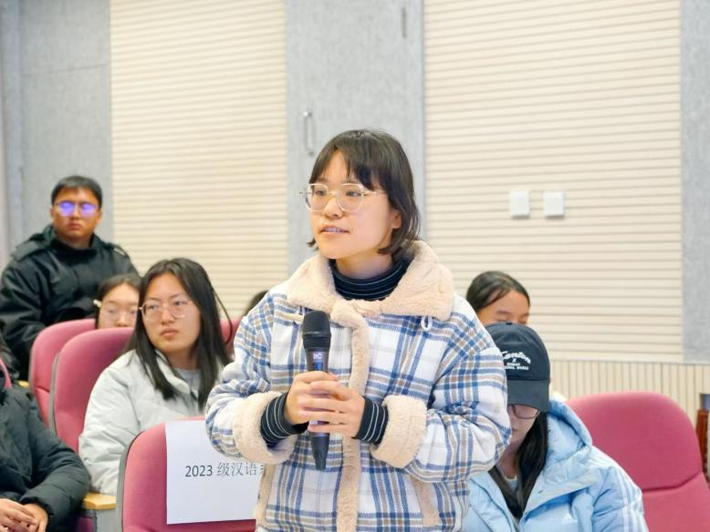 同学们结合自身文学研读体验和困惑,从诗歌创作、自然写作和青年成长等角度向阿古拉泰老师请教。面对同学们的热情提问,阿古拉泰老师认真耐心地为同学们一一解答,不仅深入浅出地剖析了诗歌创作技巧,还结合自身的文学经历与人生感悟,为同学们提供了宝贵的经验指导。