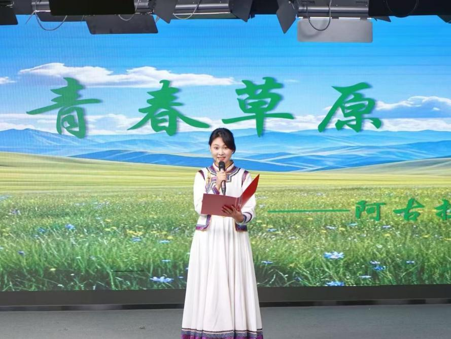 分享会期间,现场的学子们以一个个精彩纷呈的节目深情演绎了阿古拉泰老师的作品,向文学经典致敬。通过声情并茂的朗诵、轻盈灵动的舞蹈、激昂嘹亮的合唱传达出阿古拉泰老师对诗画草原的无限热爱、对中华民族的深情礼赞和对伟大祖国的倾情歌颂。这份深情与庄重,不仅触动了现场每一位师生的心弦,更让大家对阿古拉泰老师的作品产生了更为深刻而细腻的感悟。
