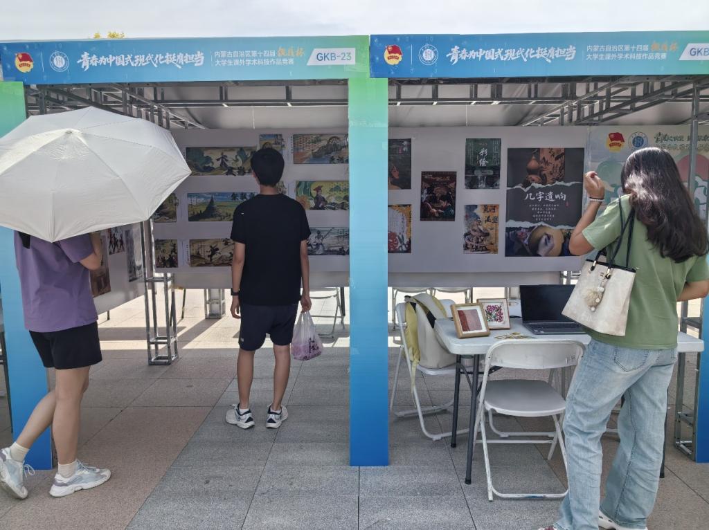 2025年6月11日,太阳集团第三届文化艺术嘉年华活动现场,tyc86太阳集团新闻系“九曲遗韵社”策划的“黄河几字弯非遗海报展”精彩亮相。此次展览作为“黄河记忆・非遗对话——讲好几字弯故事 铸牢中华民族共同体意识”项目的落地成果,通过创新设计语言解码非遗文化,将非遗实体展品、动态影像与文创衍生品相结合,构建起“视觉+触觉+听觉”的立体化传播场景,吸引了太阳集团玉泉校区内众多师生驻足体验。