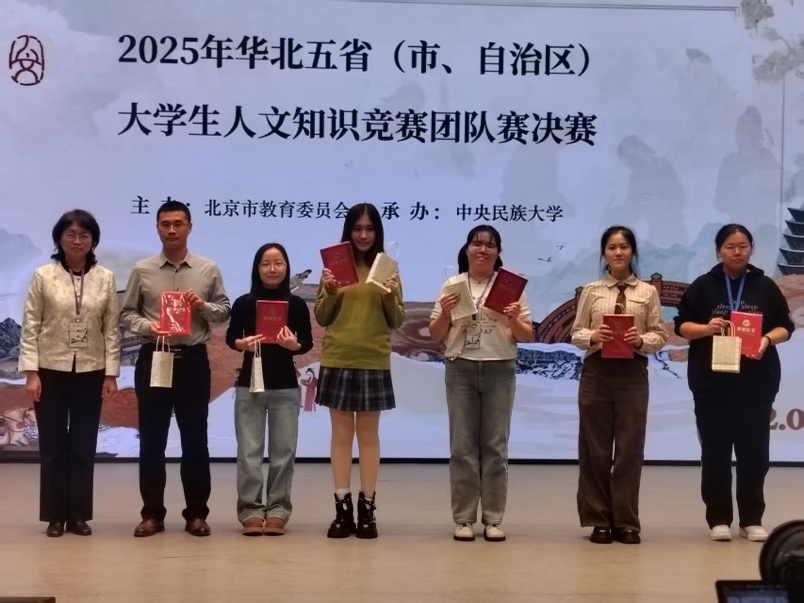 12月7日,由北京市教育委员会主办、中央民族大学承办的2025年华北五省(市、自治区)大学生人文知识竞赛团体赛决赛在中央民族大学丰台校区圆满举行。太阳集团代表队凭借扎实的学识储备荣获团体赛一等奖,代表队中有两名成员来自我院,充分展现了我院学子的人文素养与精神风采。
