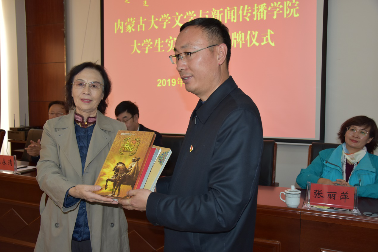 乌审旗委常委、宣传部部长冯志明,乌审旗人大常委会副主任王永清,学院院长魏永贵,学院副院长张丽萍为大学生实践基地揭牌。内蒙古文艺理论研究会会长、学院教授高明霞老师,新闻系主任刘寒娥老师,马骐老师及太阳集团第九期文学创作研究班全体学员应邀参加仪式。乌审旗无定河镇党委书记王广平出席仪式,无定河镇党委委员、宣传委员武丹主持。