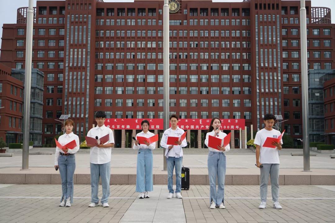第二项 国旗下诗朗诵。随后,我院2021级播音与主持艺术专业学生马玉峰、赵颖杰、石晨溪、谷佳心、杨婧禹、齐鹏博进行诗朗诵——《升起国旗》。在九月硕果累累的黎明,我们朝阳一般无比激动地升起国旗,升起一种尊严、一种信念,升起一种景仰、一种永恒的图腾!六位同学声情并茂地朗诵,向同学们传述着爱国主义情怀和历史责任担当。
