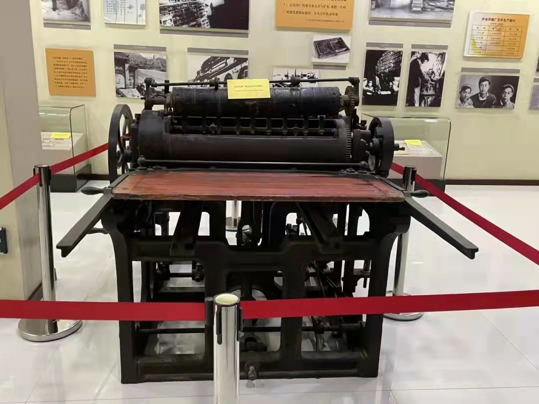 一台高1.2米、长2.3米、锈迹斑斑的印刷机令师生们印象深刻,这台印刷机见证了中国早期印刷出版业的沧桑历程。据讲解员说,为了闯过敌人的封锁线,地下工作者将机器拆卸成零件,全部装到棺材里,机智巧妙的将印刷机顺利运抵苏区。