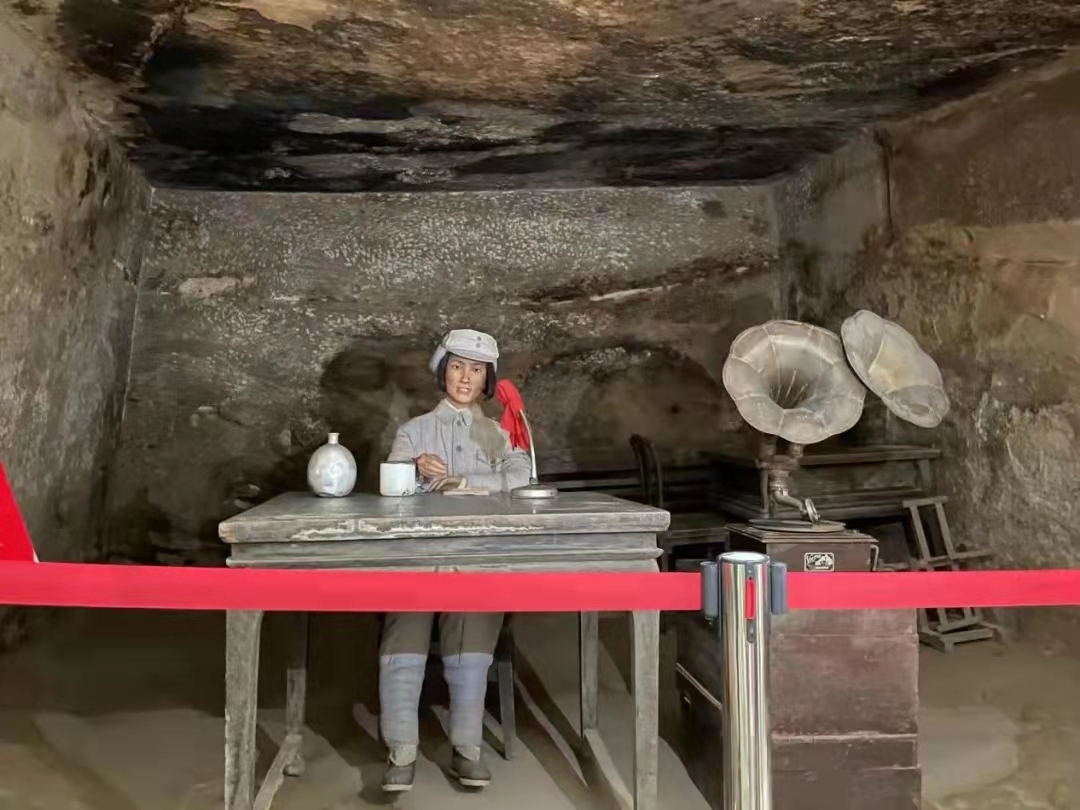 延安新华广播电台,人民广电事业在这里起步。“大家看,第一孔石窑是延安新华广播电台的播音室,这里传送出第一道红色电波。”讲解员声情并茂地为师生们讲述着历史。