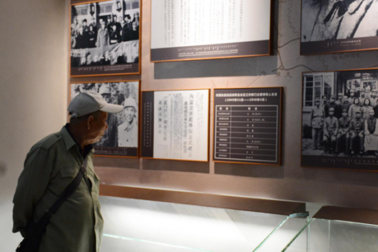 一位老者正在认真参观乌兰夫纪念馆