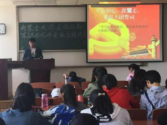 与此同时,2015级编辑出版学团支部在主楼0711举办了 “‘一学一做’暨‘不忘初心跟党走’重温入团誓词”的主题团会。此次团日活动由班长主持,包括重温入团誓词、学习总书记讲话以及当代大学生风范三个环节,与会同学们积极参与,现场气氛热烈。