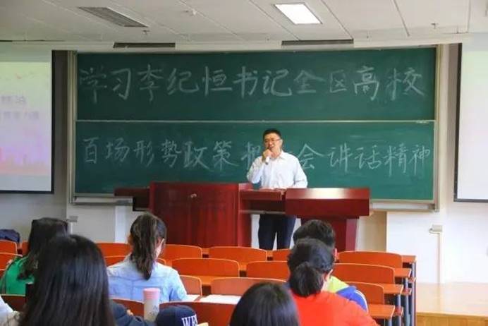 在感悟分享环节中,来自2014级汉语国际教育的张皓迪同学用“历史机遇”、“勇于创造”、“敢于开拓”三个关键词分享了自己的真实感受。来自2014级新闻学专业的石玉莹同学就坚定理想信念、勇于创新创造、坚持崇德修身、矢志艰苦奋斗四个方面表达了自己的观点。来自2014级新闻学专业的刘骁月同学就李纪恒书记讲话中的习近平总书记的重要讲话、解读自治区第十届党代会精神、畅谈青春与梦想这三个方面讲述了青年人不负所望,铸造未来的坚定信念。来自2014编辑出版学专业的武文华同学提出在面对挑战时坚定理想信念,练就真本领的重要意义,她说作为当代大学生,我们要敢为天下先,敢为弄潮儿,矢志艰苦奋斗,踏踏实实做人,踏踏实实做事。