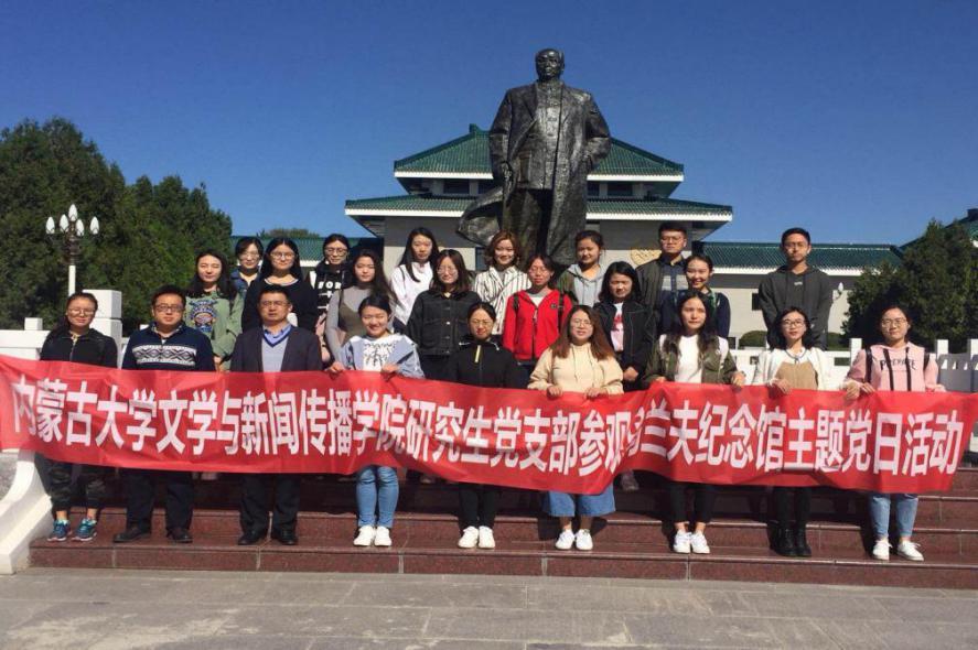 为深入学习宣传贯彻习近平总书记在全国教育工作会议上的讲话精神,引领广大青年学生践行社会主义核心价值观,做爱国励志,求真力行的年轻一代,以青春建功的实际行动,为建设亮丽内蒙古,共圆伟大中国梦而努力奋斗。9月16日上午,我院研究生党支部开展了“缅怀乌兰夫丰功伟绩,坚定理想信念”主题党日活动,走进全国爱国主义教育示范基地乌兰夫同志纪念馆。汉语系和新闻系的研究生党员、党总支副书记吴栓虎、研究生汉语系党支部书记武君参加了活动。