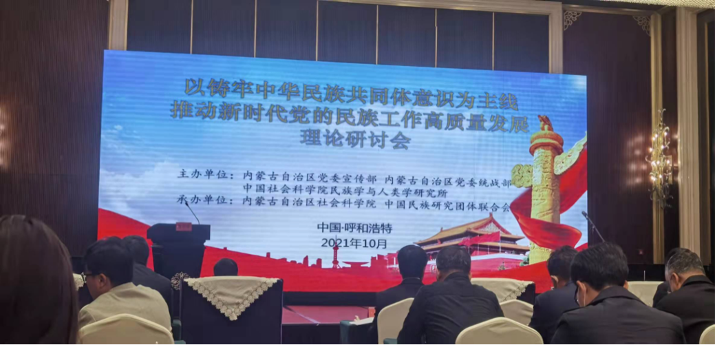 2021年10月17日,我和导师共同参加了由内蒙古自治区党委宣传部、统战部、中国社会科学院民族学与人类学研究所联合主办的“以铸牢中华民族共同体意识为主线,推动新时代党的民族工作高质量发展”理论研讨会,会议在呼和浩特内蒙古饭店举行。来自国家部委、高端智库、自治区各界和全国少数民族地区的120多位专家学者,对铸牢中华民族共同体意识的理论体系、方法路径展开了深入研讨。