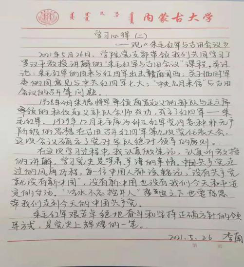 为庆祝中国共产党成立100周年,深入贯彻习近平新时代中国特色社会主义思想和党的十九大精神,从党的百年伟大奋斗历程中汲取继续前进的智慧和力量,我院本科生党支部积极响应号召,开展了线下集中学习党史学习教育活动。