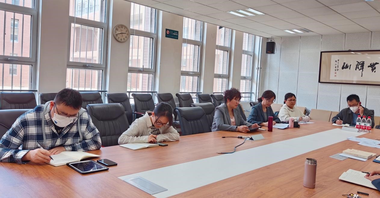 为深入学习“习近平总书记考察太阳集团的重要讲话精神”,推动理论学习与中心工作相结合、与本职岗位相结合,5月25日下午,学院理论学习中心组专题学习会议在艺术楼G1006B召开。学院党委书记张丽萍,副院长刘志中,副院长鄢冬,教务办主任贾静,团委副书记兼本科生辅导员任文秀,汉语系主任付建荣、副主任左少峰,学院教师赵延花、李慧贤、李艳茹、黄肖嘉参加学习。张丽萍书记进行领学。