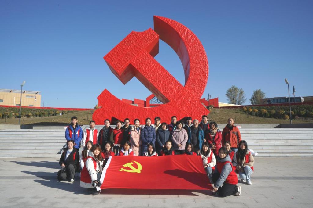 三天行走,风尘仆仆,时间虽短,收获颇丰。师生一行实地调研、走访了萨拉乌苏遗址博物馆、巴图湾红色小镇、宝丰煤基新材料有限公司、牧区大寨、毛乌素沙地歼灭战绿化示范项目基地。穿行在毛乌素沙地腹部,师生们深刻感受到乌审人民直面风险与挑战,坚定不移打好“红”“绿”两张牌的鲜活实践。