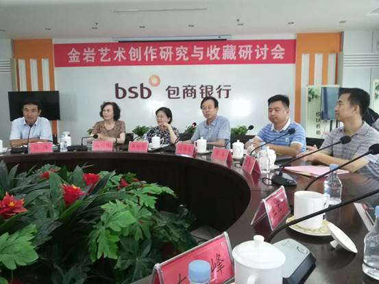 15日上午9点至12点,召开了金岩艺术创作研究与收藏研讨会,会议由《包商时报》主编,全国十大读书人物冯传友先生主持。张伟教授代金岩先生宣读《创作体会谈》,金岩先生以绘画为例,谈及自己从事艺术创作的三件法宝:“成功在于选择,成败在于方法,成就在于特色”。国家一级编剧、剧作家郭长岐先生认为,金岩无论是在事业还是在艺术创作领域,都有他自己的心得,他可以在书法、摄影、绘画、写作等领域都取得了一定的成果,也不是偶然,他可以称之为实在的“杂家”。张伟教授认为,金岩给文艺创作的启示在于他的非理性、偶然性和无意识,这是可贵的创造精神。随后,张继炼、张树天、王宏伟、高兰英、越慧贞、鄢冬等专家学者,从散文、书法、绘画、摄影、剪纸等方面对金岩的文艺创作给予充分的肯定,也都提出了真诚的建议。