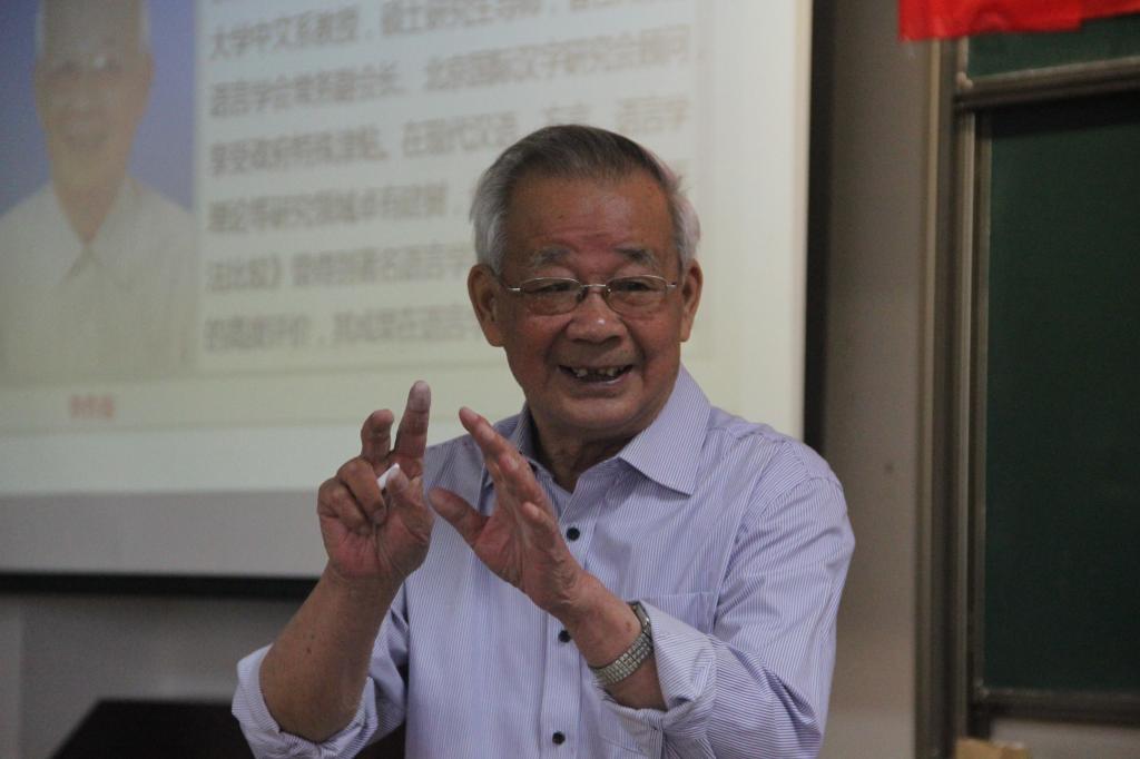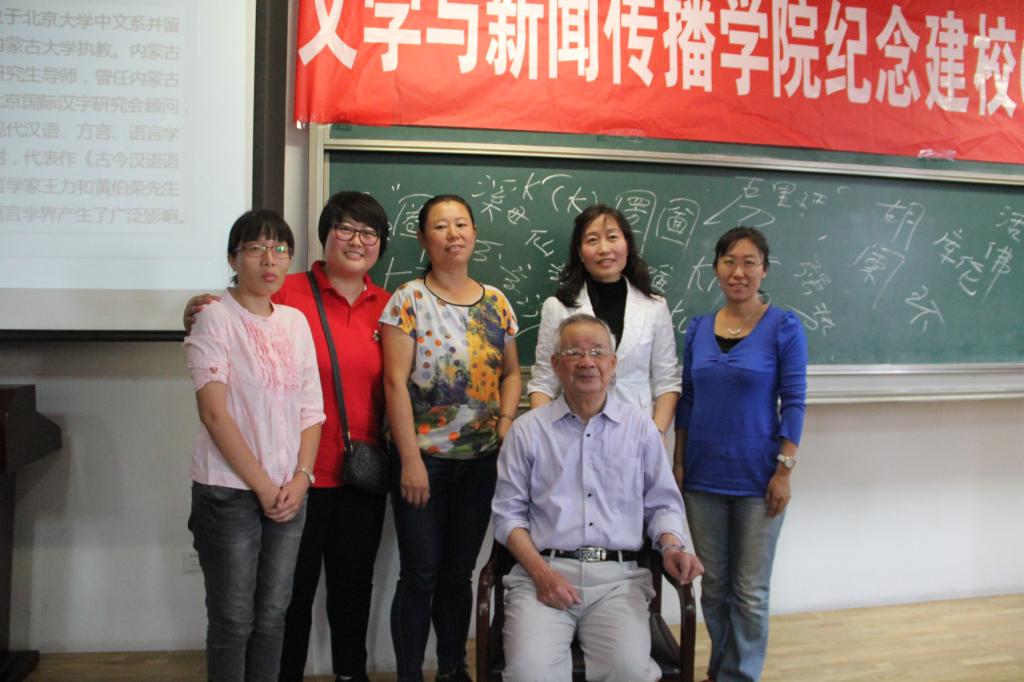 李作南教授在讲座中详细讲解了什么是返借词、汉语中有哪些返借词、返借词形成的原因等语言学前沿论题。李先生指出,语言的发展与社会、政治、民族等因素联系密切。“返借词”这一语言现象就体现了蒙汉民族在语言文化上的交融。各民族间的大杂居、小聚居对于语言的相互影响、语言的发展进程有极为重要的影响。讲座中,李先生不仅以厚重的学识底蕴细雨无声滋润着同学们,他更是鼓励青年学子敢于迎难而上,在学术上与学者争鸣。在两个多小时的讲座中,李先生以80多岁高龄全程站立讲授。看似枯燥的学术词汇在李先生深入浅出、幽默风趣的讲授过程中,被同学们轻松地理解和领悟。在讲到什么是返借词时,李先生举例汉语的“博士”一词,被蒙语所借产生了“伯克西”一词。由蒙语词汇“伯克西”进而发展为“巴什”、“把式”、“把戏”等词汇,又被汉语借回而形成“返借词”。同学们听得聚精会神,不时露出会心的微笑。在互动交流环节,同学们踊跃提问,李先生为同学们一一解惑。讲座引发了同学们热烈的反响。