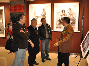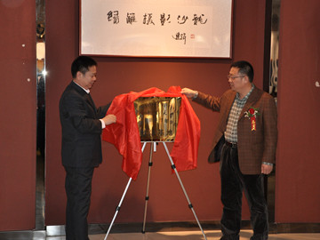 揭牌仪式上,我院各位领导、老师参观了本次大画幅作品展览,并与主办方进行了深入探讨与交流。而后,呼和浩特市绿篱影廊文化传播有限公司总经理 李文建 先生与我院院长 李树新 教授共同为该教学基地揭牌并致辞。在讲话中,李院长指出“希望与主办方进行更多、更好、更密切的合作,进而推动主办方与我院的共同发展,实现双方双赢目标”。